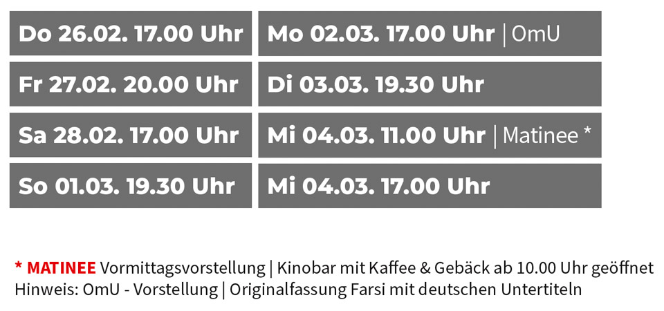 DarstellerInnen: Vahid Mobasseri, Mariam Afshari, Ebrahim Azizi